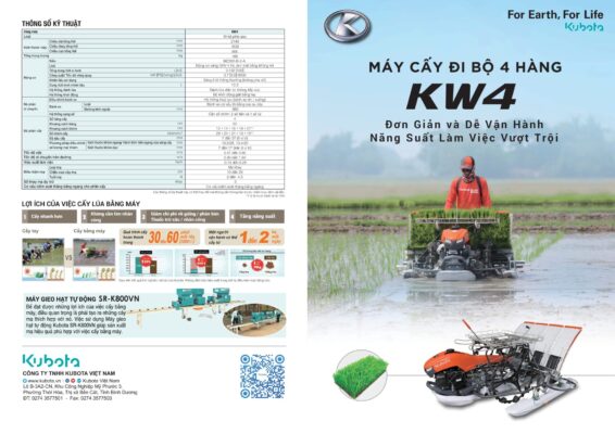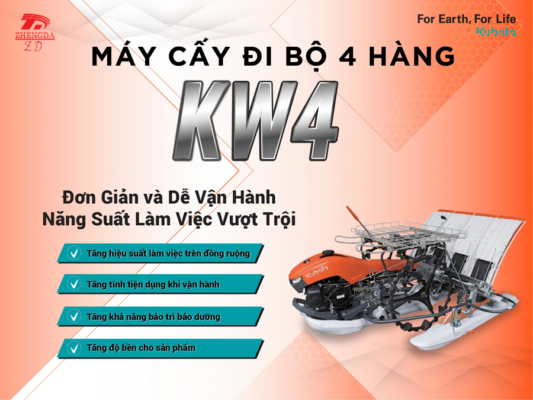 Kubota Chính Đạt phân phối chính thức máy cấy lúa Kubota đi bộ 4 hàng KW4 mới